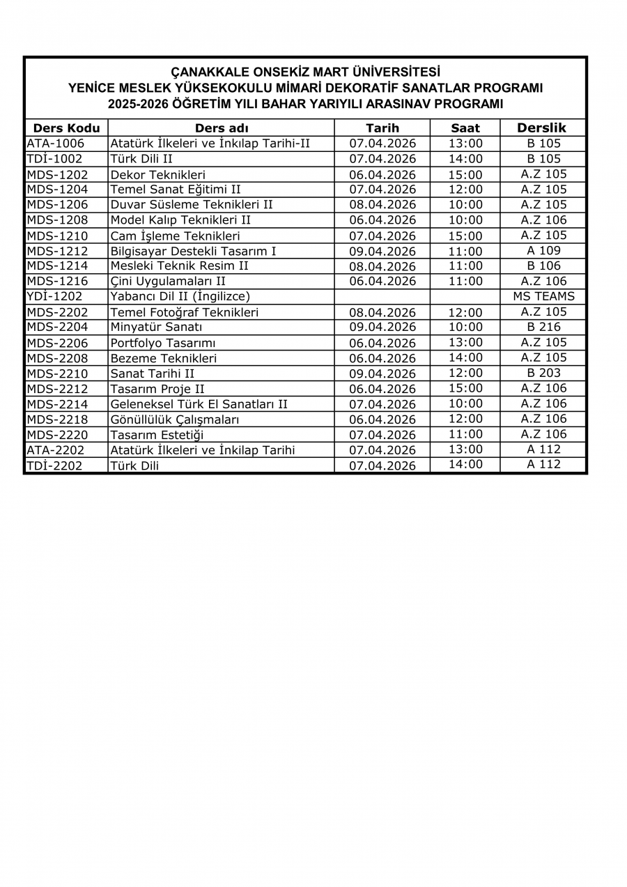 2026 Bahar YY ARASINAV PROGRAMI