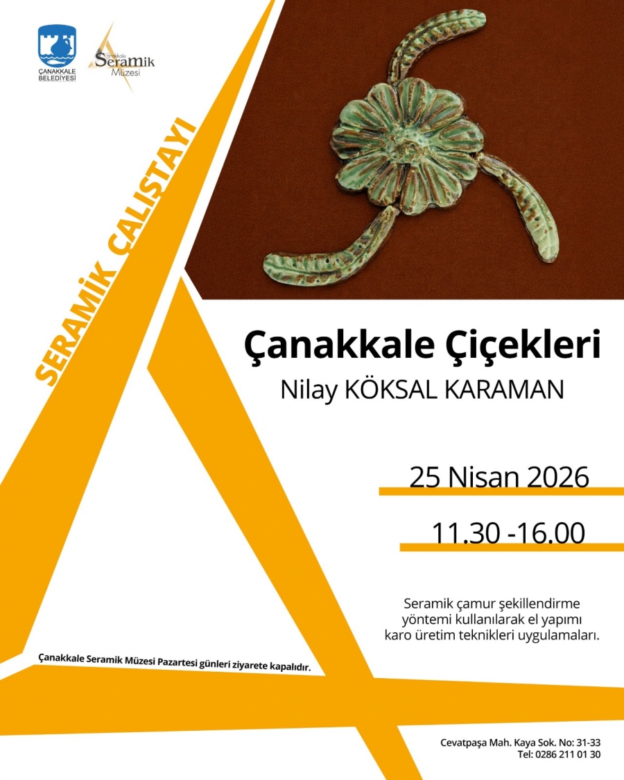 The workshop titled "Flowers of Çanakkale," led by Lecturer Nilay KÖKSAL KARAMAN from the Architectural Decorative Arts Program of the Handicrafts Department at Yenice Vocational School, will take place on Saturday, April 25, 2026, between 11:30 AM and 4:00 PM at theÇanakkale Municipality Ceramic Museum. The event is free, and all students and art lovers are invited.