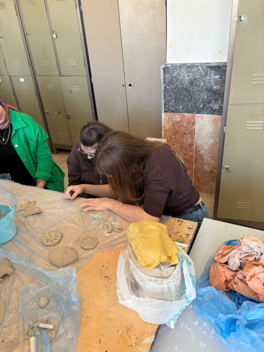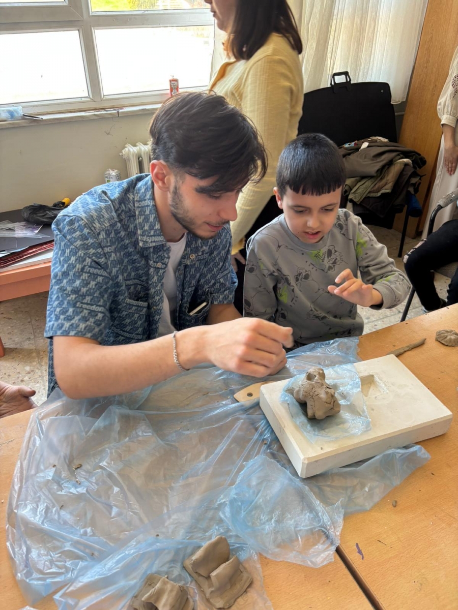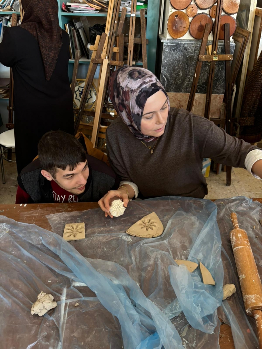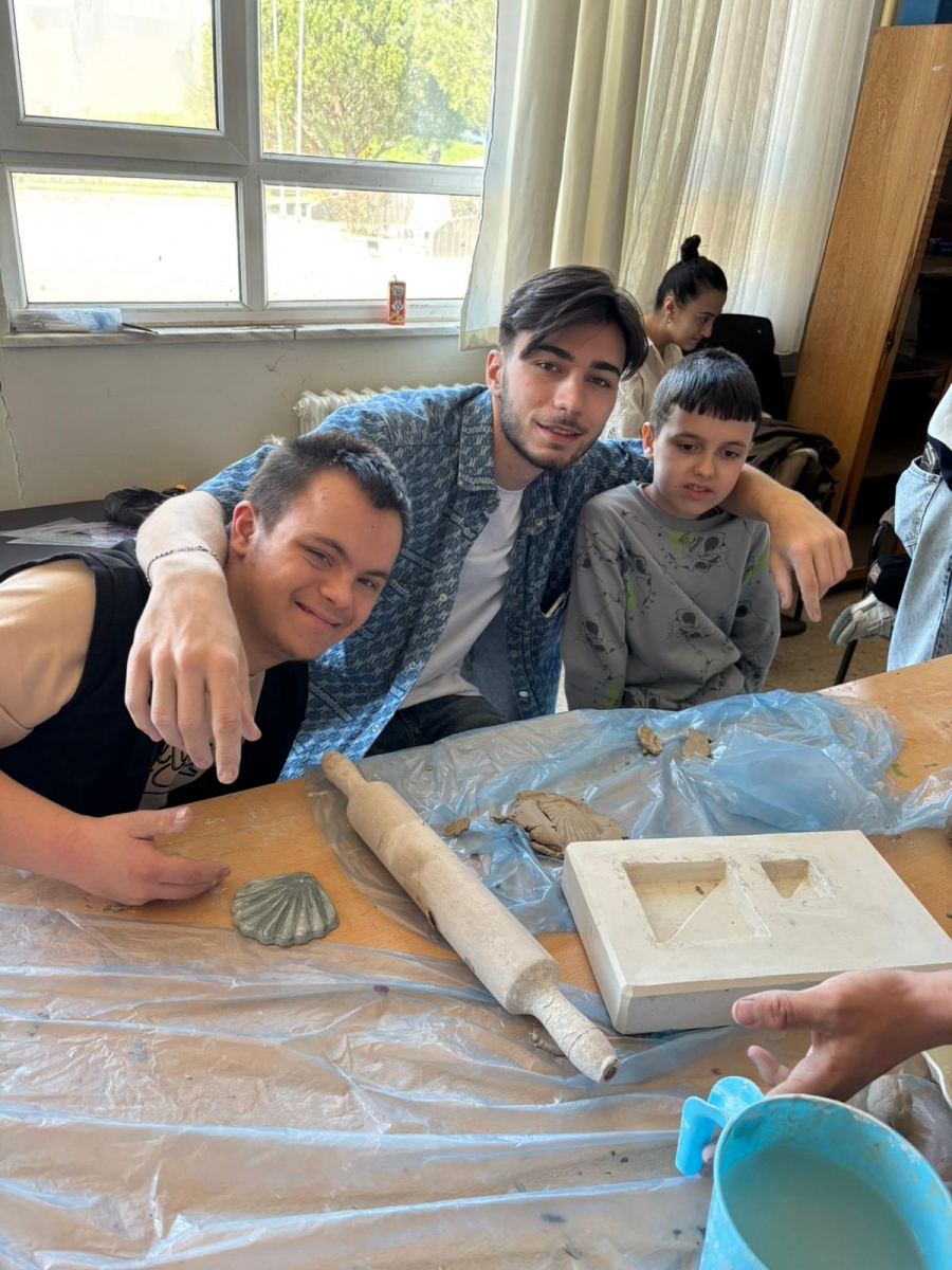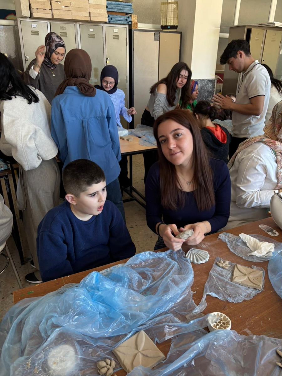 A ceramics workshop was organized with the participation of students from the Architectural Decorative Arts Program of the Department of Handicrafts and students from the 15 July Democracy Martyrs Special Education Application School. For the ceramics workshop, a total of 26 students participated: 7 second-year students from our department taking the Volunteer Studies course, 9 first-year students selected on a voluntary basis, and 10 students from the special education application school. Under the guidance of project supervisors Assoc. Prof. Dr. Ece YÜCEL and Assoc. Prof. Nilay KARAMAN, the students gathered in our Handicrafts Department workshops to create artistic works using ceramic clay.